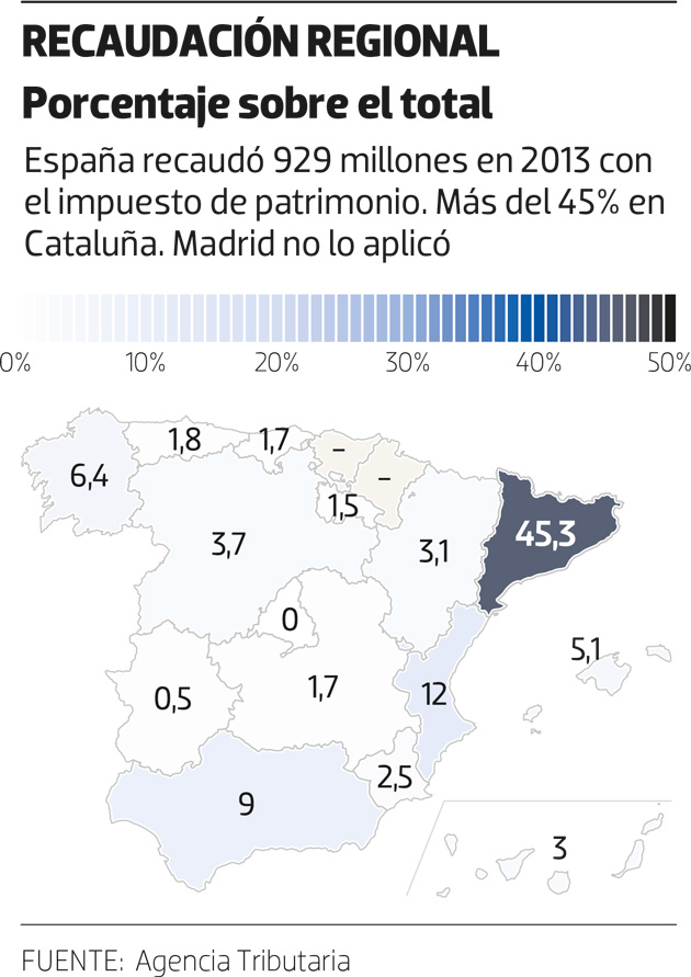 El resultado es que si en 2007 tuvieron que pagarlo 967.000 españoles —y se recaudaron 2.121 millones—, en 2013, último año del que la Agencia Tributaria ha publicado datos, solo lo abonaron 154.000 personas y los ingresos se quedaron en 930 millones. Estos datos solo incluyen a las comunidades integradas en el régimen común (todas excepto Navarra y País Vasco).